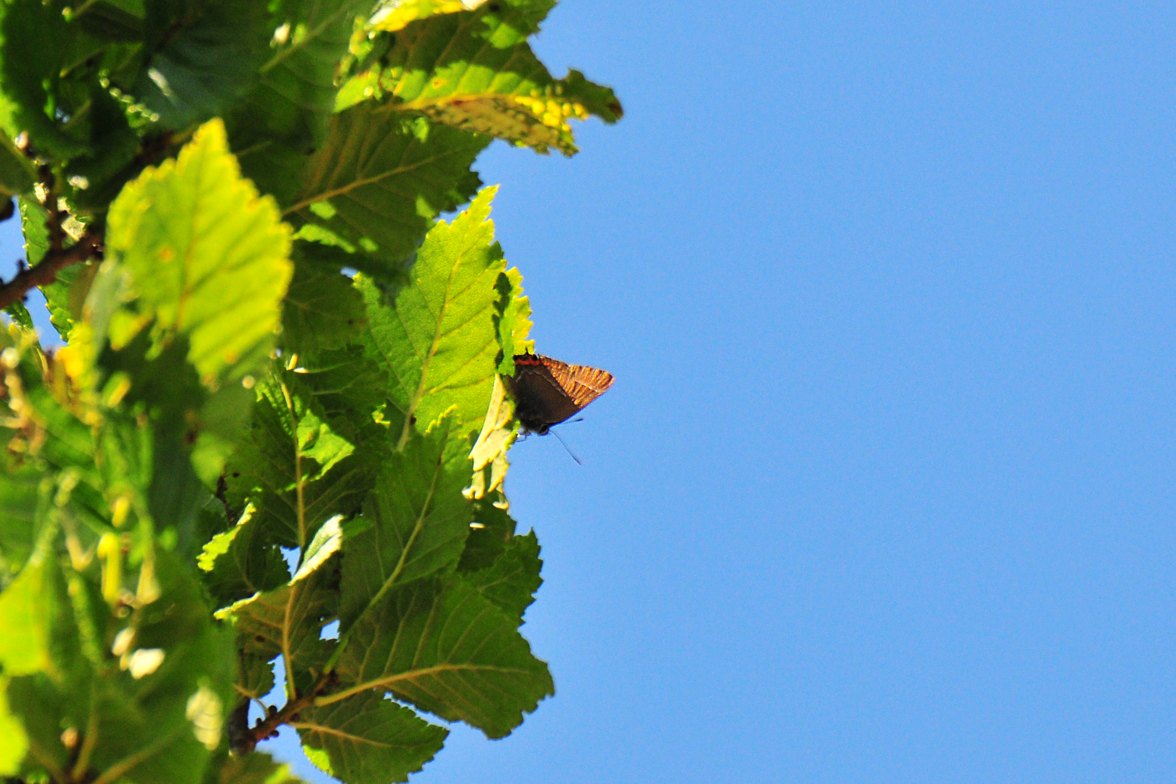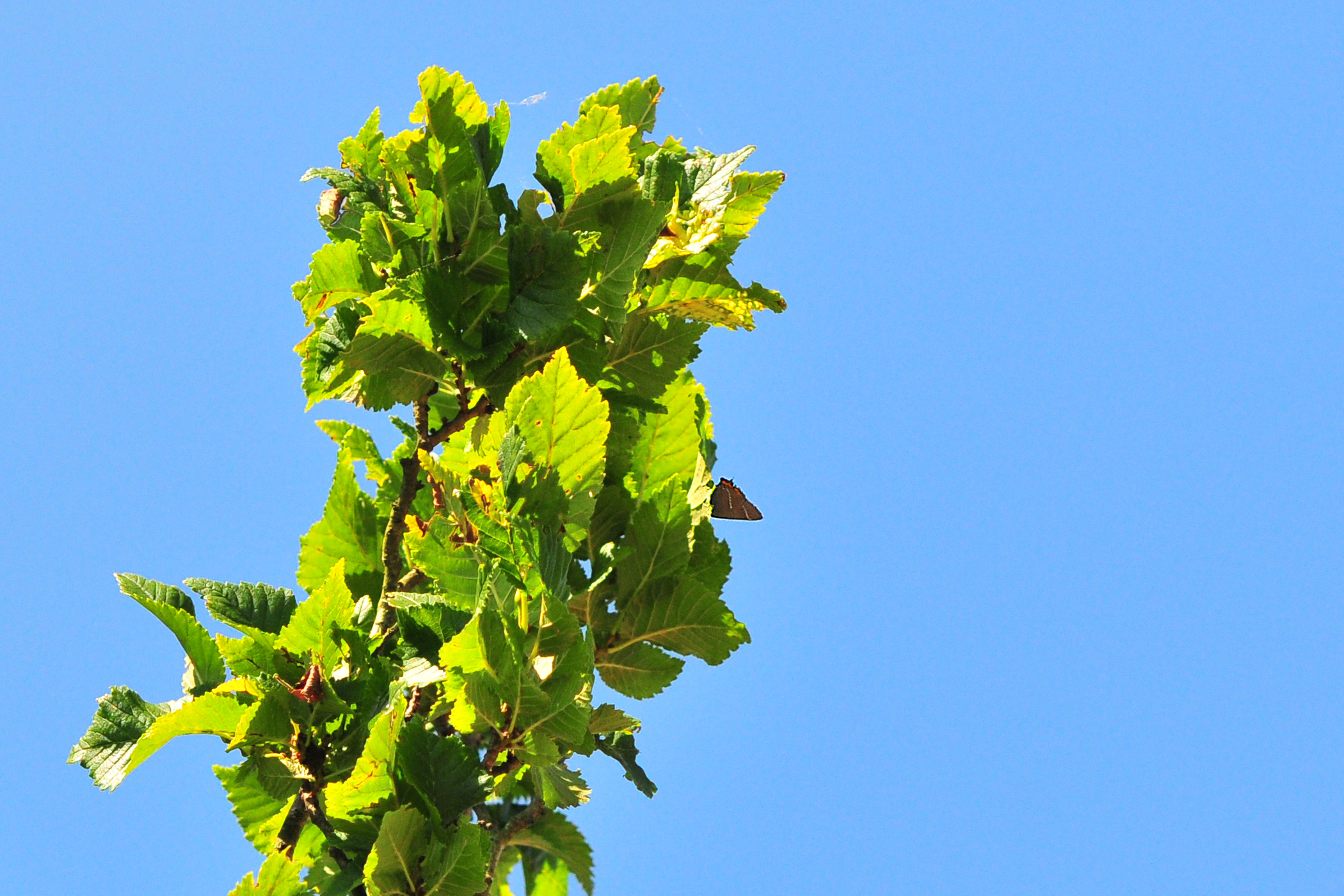 Een of meerdere Iepenpages zaten in de rechter Iep, in de kroon of vlak eronder.